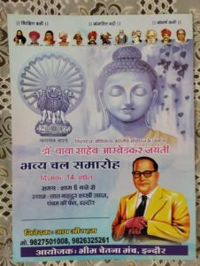 भीम चेतना मंच का कार्यक्रम झांकी के माध्यम से प्रारंभ होता है | जो सैल्वी होस्पिटल से प्रारंभ होकर लालबहादुर शास्त्री उद्यान, गीता भवन चौराहा स्थित बाबा साहेब की प्रतिमा स्थल पर पहुंचती है, जिसमें हजारों की संख्या में लोग शामिल होंगे,