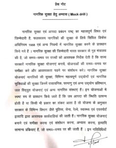 नागरिक सुरक्षा एवं आपदा प्रबंधन राष्ट्र का महत्वपूर्ण विषय एवं जिम्मेदारी है, फलस्वरुप नागरिकों की सुरक्षा के लिये सिविल डिफेंस अधिनियम 1968 एवं अन्य नियमों में नागरिक सुरक्षा करने के प्रावधान किये गये हैं। नागरिक सुरक्षा की जिम्मेदारी भारत सरकार के गृह मंत्रालय की है, जो समय-समय पर राज्यों को आवश्यक निर्देश देती है कि राज्य सरकारें नागरिक सुरक्षा योजनाएं बनायें, योजनाओं की समय-समय पर समीक्षा करे और आवश्यकता पडने पर संशोधन करे। नागरिक सुरक्षा योजनाएं नागरिकों की सुरक्षा, विभिन्न महत्वपूर्ण उद्योगों एवं नागरिक सुविधाओं की सुरक्षा जिनमें रासायनिक, परमाणु एवं अन्य उद्योग प्रतिष्ठान, जल विद्युत योजनाएं एवं अन्य नागरिक संस्थाएं हैं। इन योजनाओं में स्पष्ट रुप से प्रावधान किये जाते हैं कि जब आपदा की स्थिति उत्पन्न होती है या किसी भी प्रकार का संकट आता है तो योजना के अनुसार सरकार के विभिन्न विभाग जैसे पुलिस, सेना, रेल्वे, स्वास्थ्य एवं एयरपोर्ट इत्यादि द्वारा आवश्यक कार्यवाहियां की जाती हैं। नागरिक सुरक्षा योजनाएं बनाने एवं समीक्षा करना एवं संशोधन करना, अभ्यास करना, इत्यादि सामान्य प्रक्रियाएं हैं, जो समय-समय पर की जाती हैं। इन गतिविधियोंइस अभ्यास से किसी भी नागरिक को भयभीत होने की आवश्यकता नहीं है।