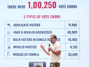 एक लाख से ज़्यादा फर्जी वोट बनाए गए हैं। उन्होंने बाकायदा सबूत पेश करते हुए दिखाया कि कैसे मतदाता सूची में एक ही घर के पते पर सैकड़ों लोगों के नाम दर्ज हैं। यह न सिर्फ चुनावी नियमों का उल्लंघन है, बल्कि लोकतंत्र की नींव पर भी एक बड़ा हमला है।”ये आरोप इतने गंभीर हैं कि इस पर राजनीतिक हंगामा होना तय है। राहुल गांधी के आरोपों के बाद, चुनाव आयोग भी हरकत में आ गया है। आयोग ने राहुल गांधी से इन आरोपों का लिखित हलफ नामा (affidavit) मांगा है ताकि इसकी गहन जाँच की जा सके। अब सवाल ये उठता है कि क्या ये आरोप सिर्फ राजनीतिक हैं या फिर इनमें कोई सच्चाई है? क्या चुनाव आयोग निष्पक्ष जाँच कर पाएगा? और सबसे बड़ा सवाल, क्या इस ‘वोट चोरी’ की परतें खुलेंगी? ‘आइये सुनते क्या कहा राहुल गाँधी ने.