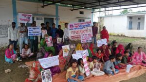 शंकरपुर मगरदा प्राथमिक विद्यालय बंद करने के खिलाफ विद्यालय परिसर में दिया धरना।