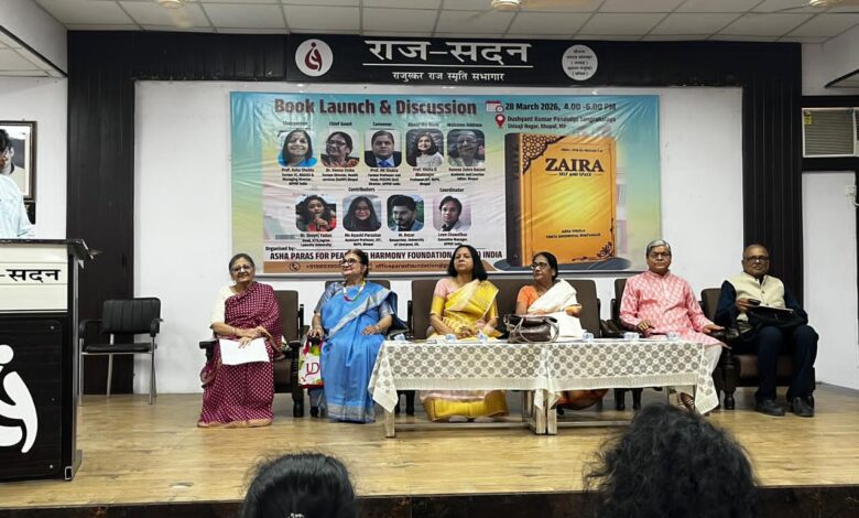 मध्यप्रदेश की राजधानी भोपाल एक बार फिर साहित्यिक ऊर्जा और बौद्धिक संवाद का केंद्र बना, जब आशा पारस फॉर पीस एंड हारमनी फाउंडेशन (APPHF) इंडिया द्वारा “ZAIRA: Self and Space” पुस्तक का भव्य लोकार्पण एवं विचार-विमर्श कार्यक्रम आयोजित किया गया। यह गरिमामय आयोजन शिवाजी नगर स्थित दुष्यंत कुमार पांडुलिपि संग्रहालय में सायं 4:00 बजे से प्रारंभ हुआ, जिसमें देश-विदेश के शिक्षाविद, साहित्यकार, शोधकर्ता और युवा प्रतिभाएं बड़ी संख्या में शामिल हुईं।